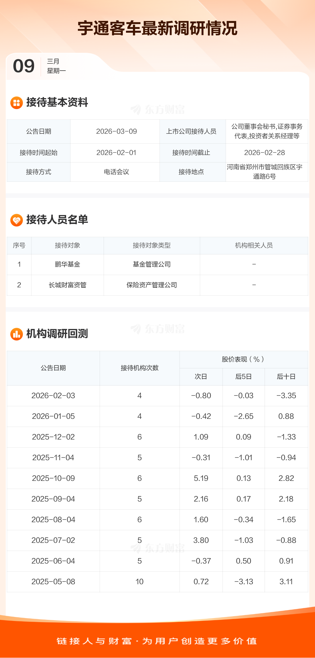 【调研快报】宇通客车接待鹏华基金等2家机构调研