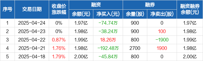 冠城新材:融资净偿还74.74万元,融资余额1.97亿元(04-24)