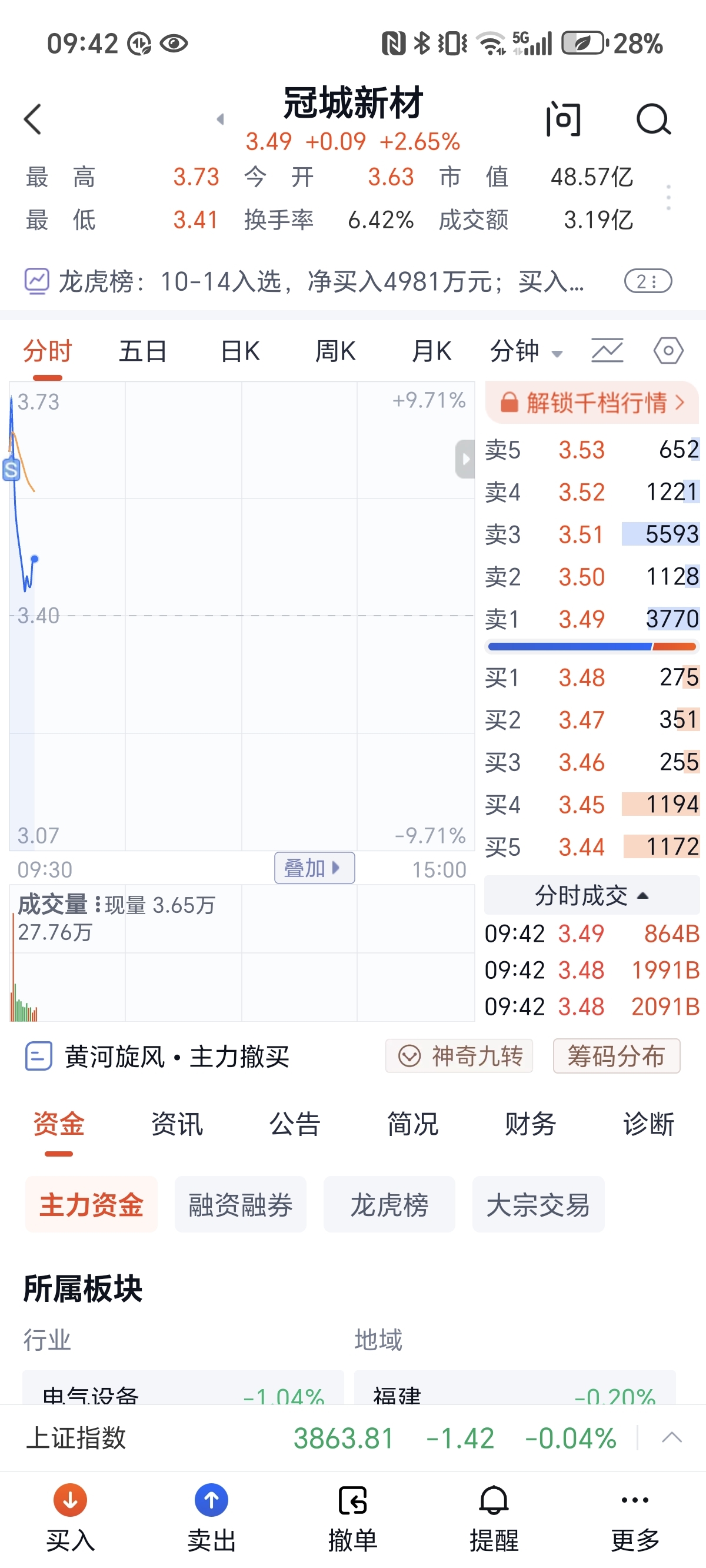 $冠城新材(SH600067)$ 开盘挂3.73卖出居然成交了,谢谢主力成全。祝留下的兄弟发财!