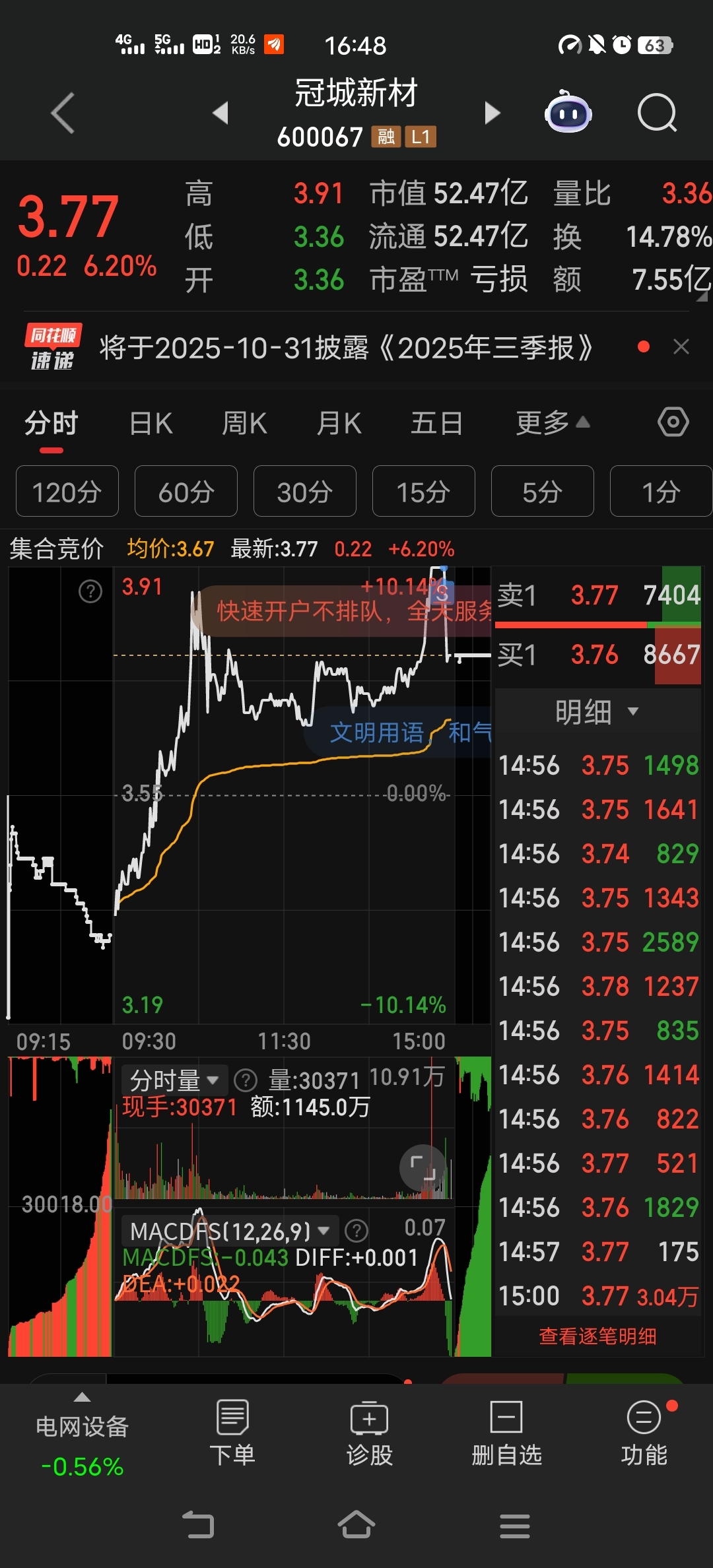 $冠城新材(SH600067)$ 尾盘开板瞬间跑了,不知道对不对?