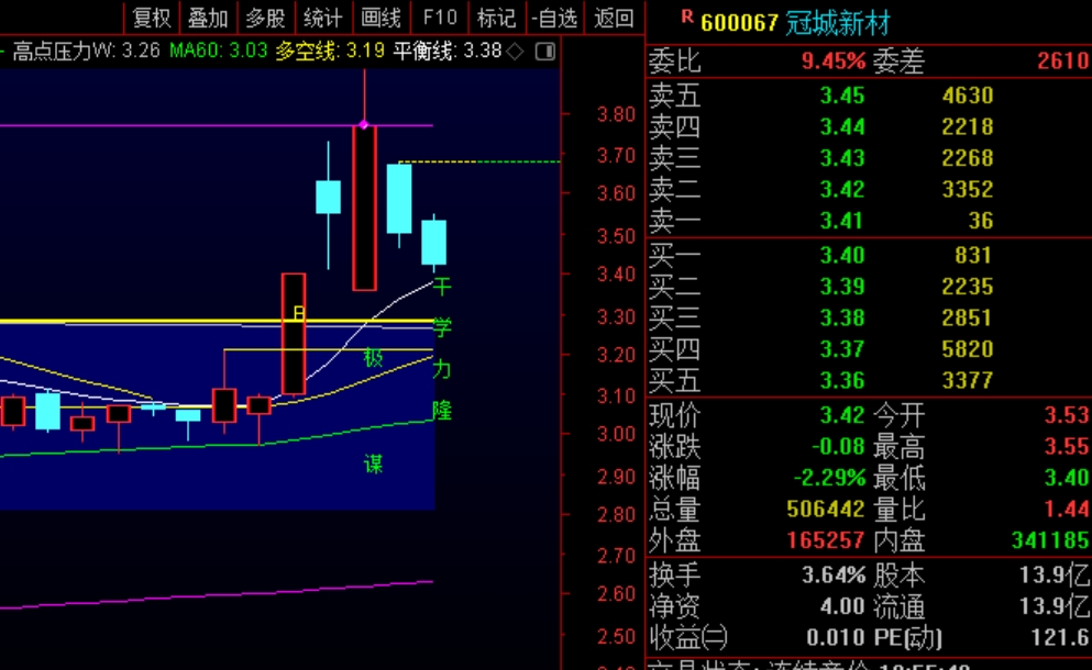 $冠城新材(SH600067)$ 冠城新材在开盘价以下找合适的位置在平衡线附近介入一笔