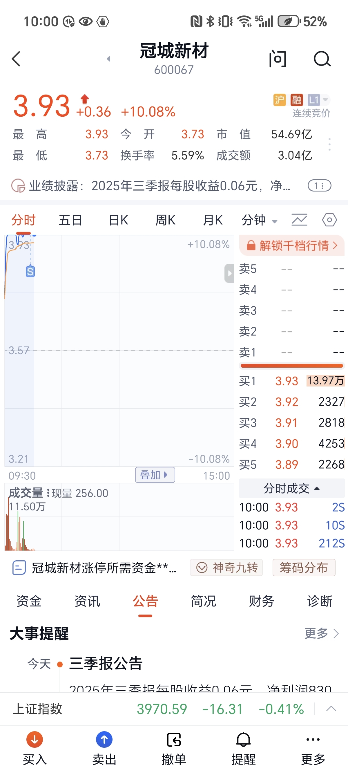 $冠城新材(SH600067)$ 君子不立于危墙之下,出一半