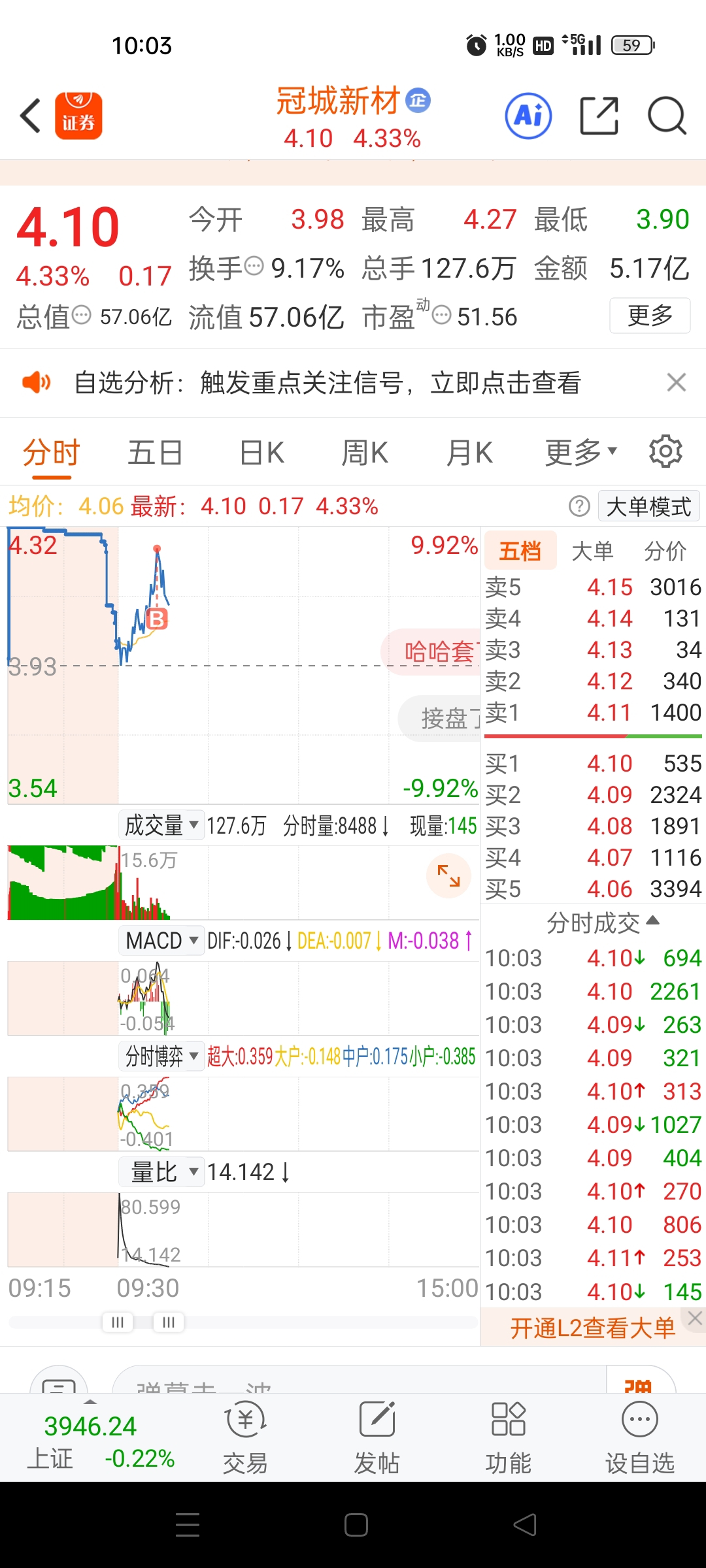 $冠城新材(SH600067)$ 成功追在最高点