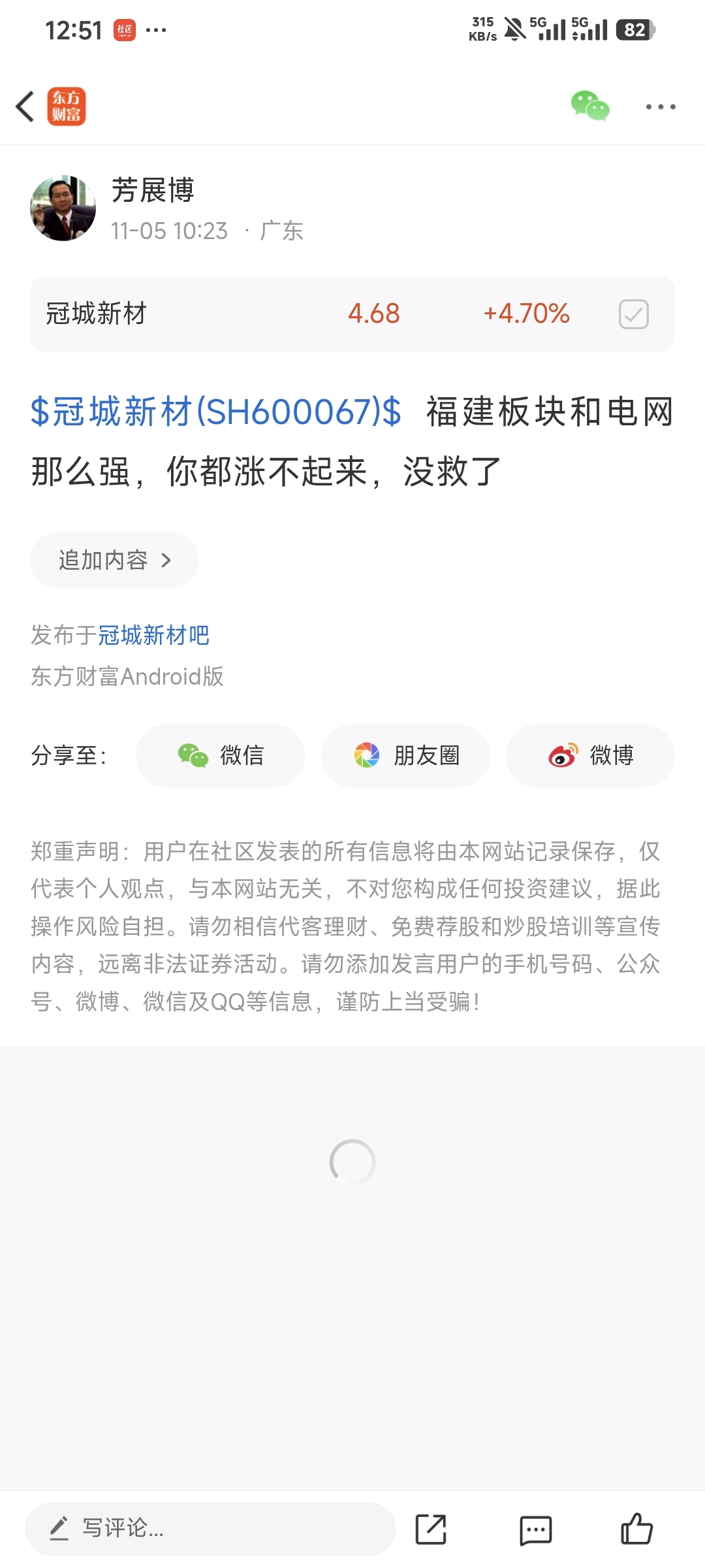温馨提示: 1.根据《证券法》规定,禁止编造、传播虚假信息或者误导性信息,扰乱证券市场;2.用户在本社区发表的所有资料、言论等仅代表个人观点,与本网站立场无关,不对您构成任何投资建议。用户应基于自己的独立判断,自行决定证券投资并承担相应风险。《东方财富社区管理规定》