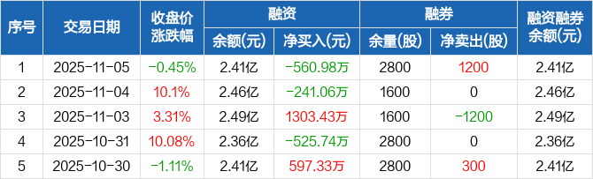 冠城新材:融资净偿还560.98万元,融资余额2.41亿元(11-05)