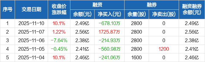 冠城新材:融资净偿还678.1万元,融资余额2.49亿元(11-10)