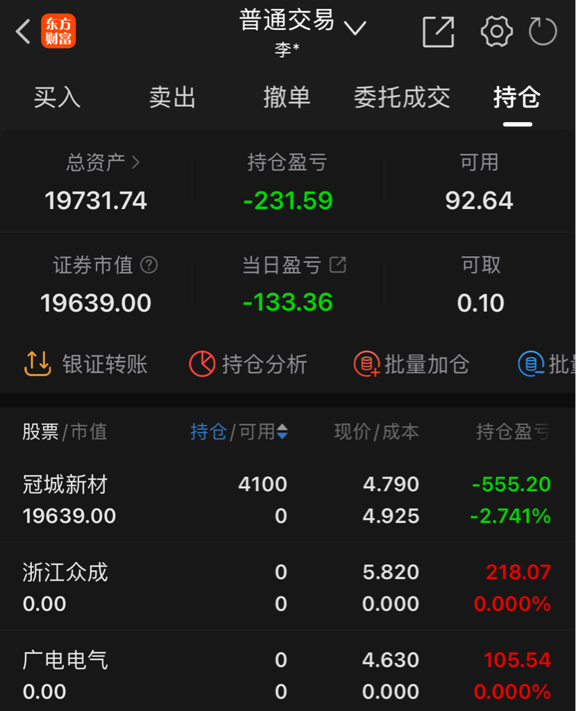 今日大亏133