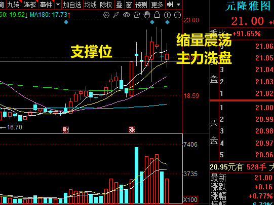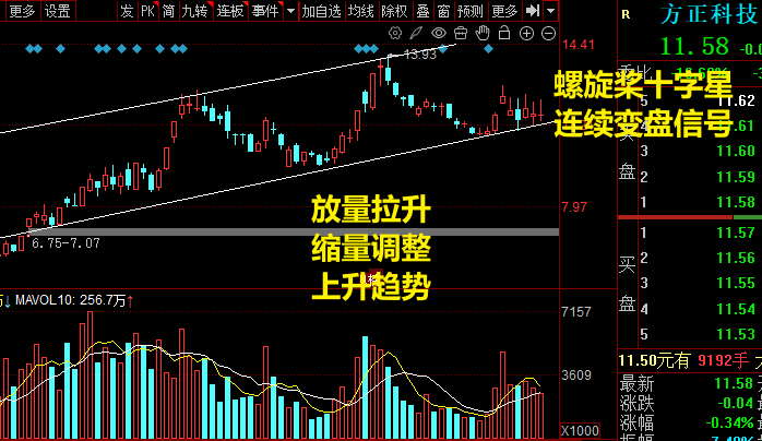 股价走的是标准的上升趋势,放量拉升,缩量调整,主俚高度控盘中,最近两个交易日收出螺旋桨和十字星,很明显是变盘讯号,目前股价回踩支撑不破,意味着主俚护盘,短期内有望触底反弹,走出三浪主升行情。