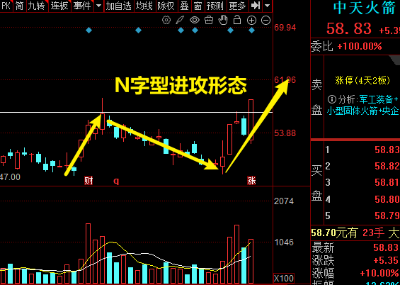 股价近期走的是标准的N字形进攻形态,放量拉升,缩量调整,主俚高度控盘中,就在周四,突然一根放量的大阳线拔地而起,成功突破了左锋高点压力位,此时上方空间被打开,场内紫金分歧转一致,短期有望走出趋势主升行情,今天股价冲高回落,回踩下方支撑位57,则是低西的完美位置。