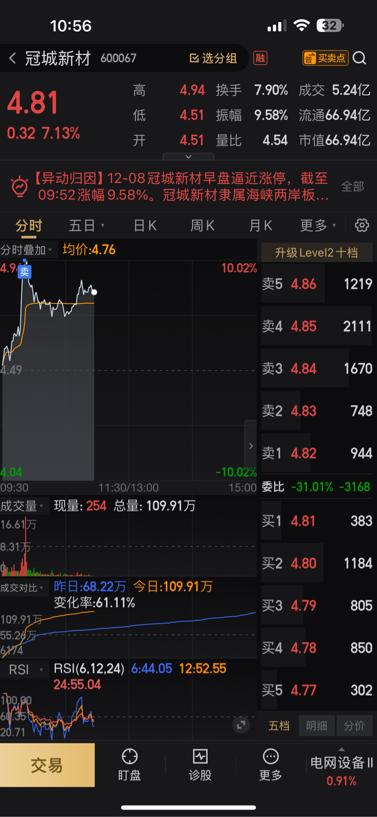 $冠城新材(SH600067)$ 谢谢主力,涨停出了