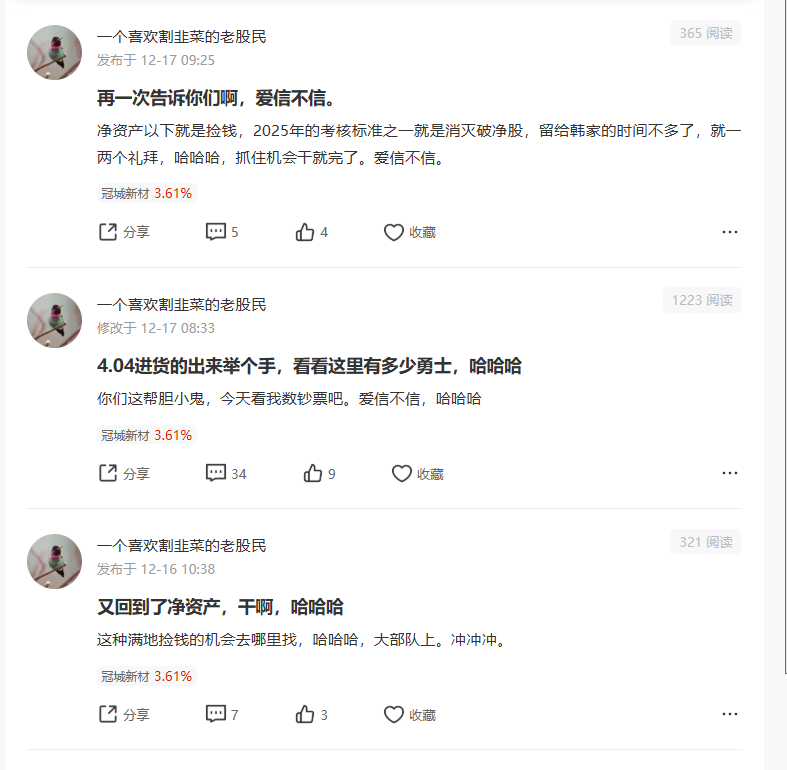 净资产之下苦口婆心叫你们进货,一年中这种有确定性可以融资重仓猛干的机会不多啊,各位拿稳,等出坑之后再一次把筹码卖给韭菜。到时候那批追涨杀跌的蝗虫来了,稳稳地卖个高价。哈哈哈,爱信不信。