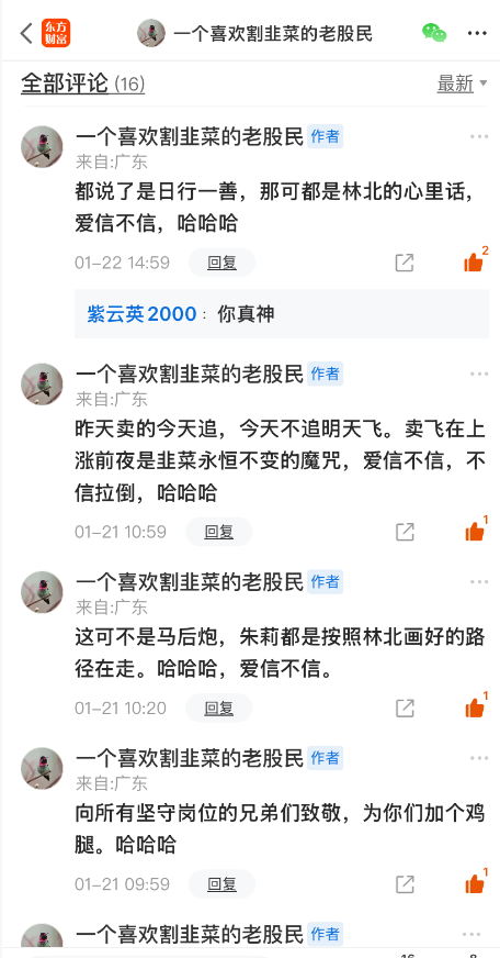 等到前几天卖了想做T而踏空的韭菜憋不住调头追的时候,我们再轻轻松松把筹码丢给他们。韭菜们天天盯着股吧的言论影响着自己脆弱的心灵,气氛一起来是肯定憋不住的,追高是他们的宿命,哈哈哈。爱信不信,不信拉倒。