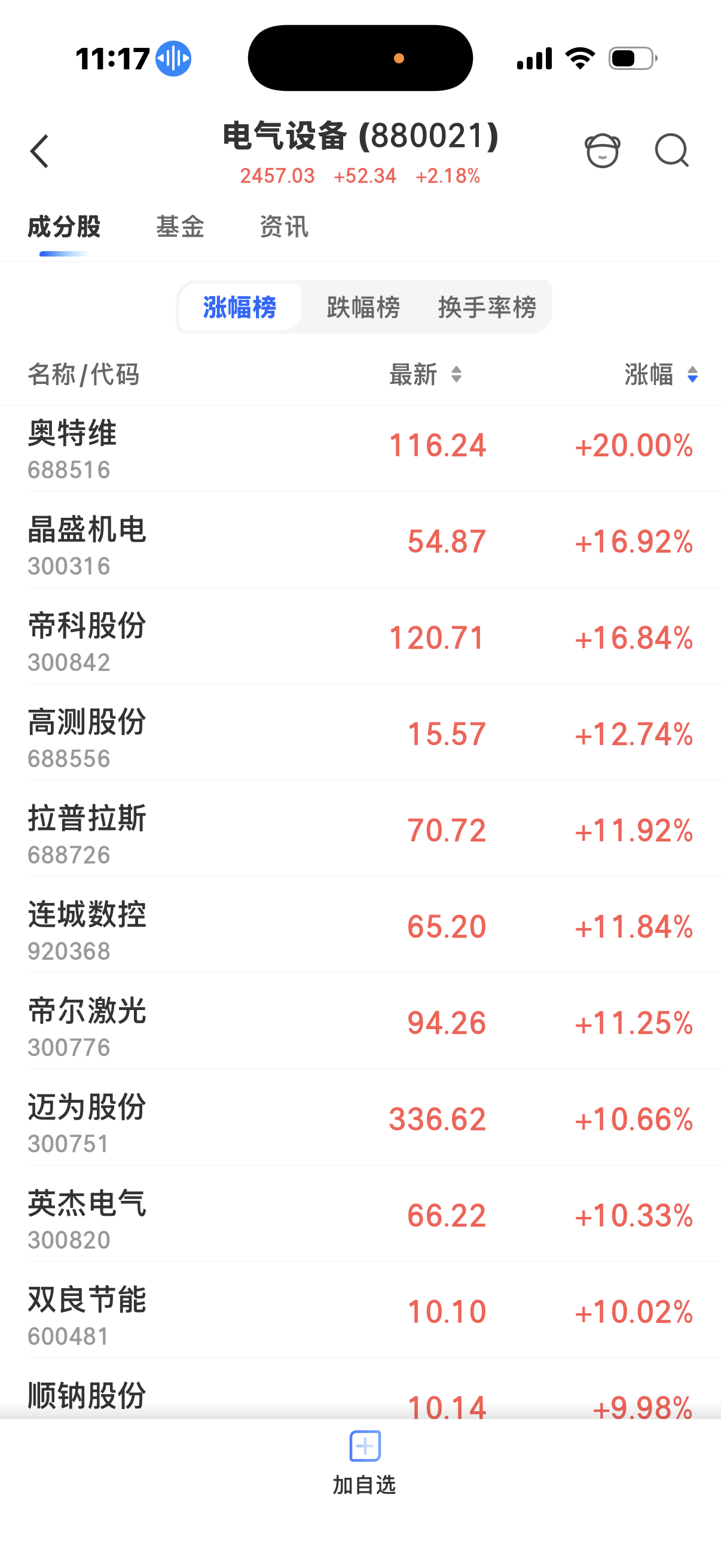 电器设备板块涨幅居前