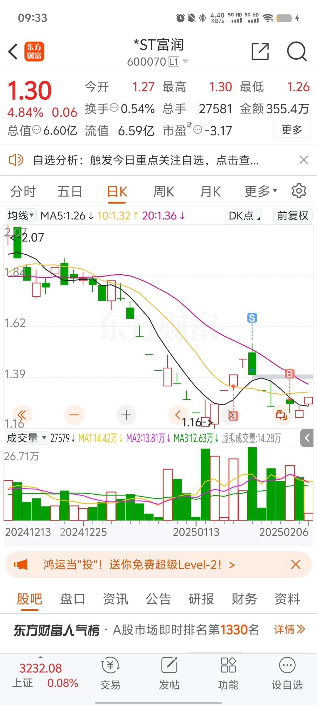 $*ST富润(SH600070)$ 前几天谁骂老子是托来,自己拿不定还要怪别人