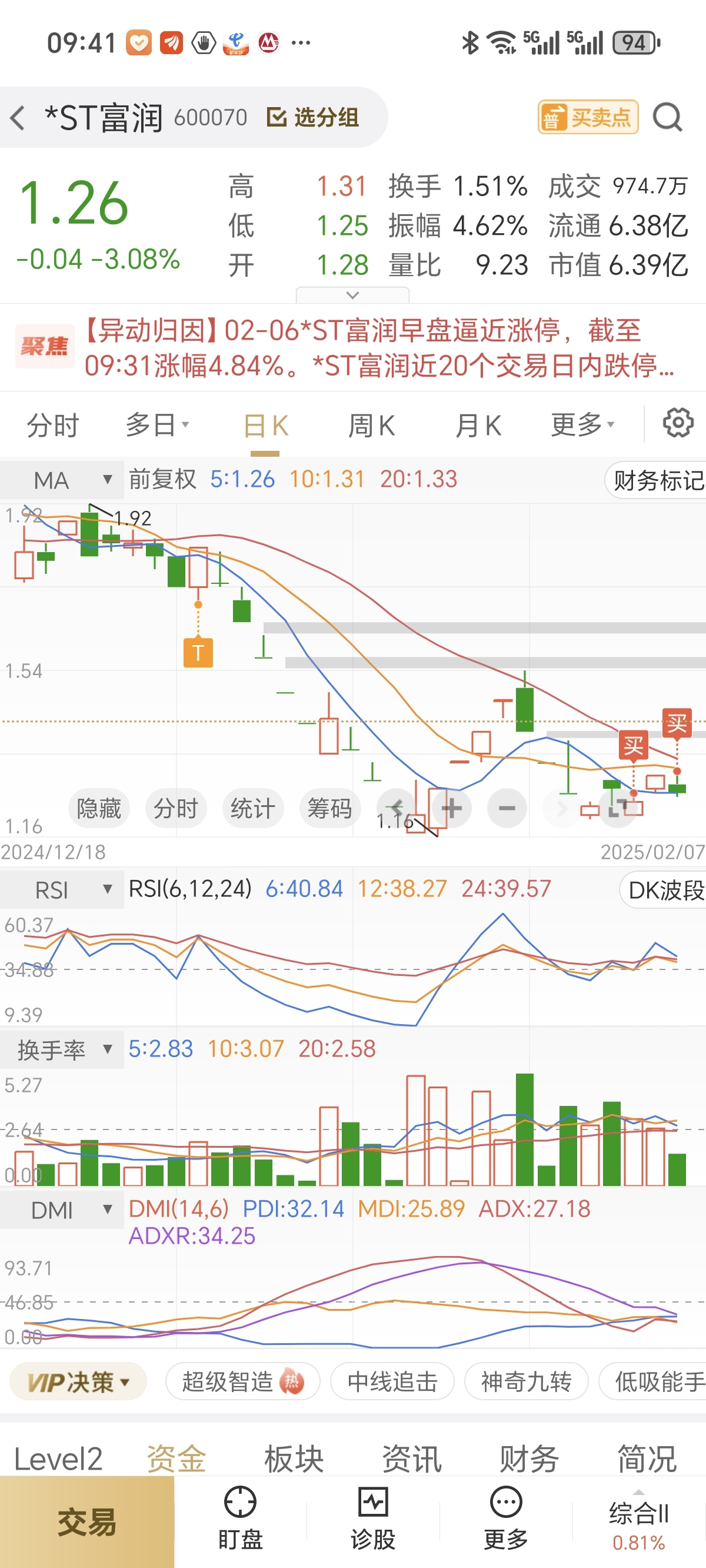 $*ST富润(SH600070)$ 小试一把,买点浙江富润