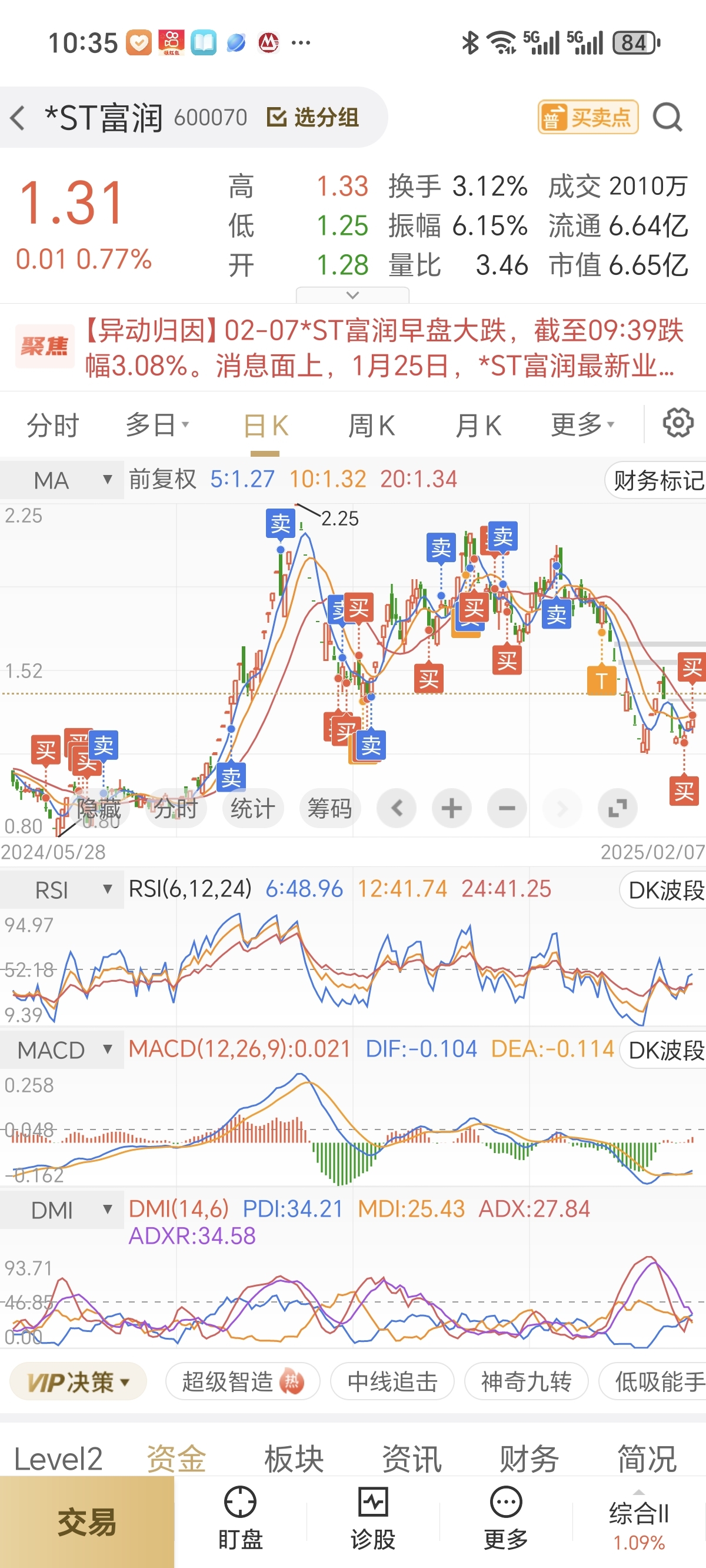 $*ST富润(SH600070)$ 虽然浙江富润病入膏肓,最起码还有人在救,退市的可能性小了,资本琢利,跟着这帮施救的人应该能赚点钱,比放银行强,当年的盈方微也是这样,最后涅槃重生,只要不触碰红线就有希望。