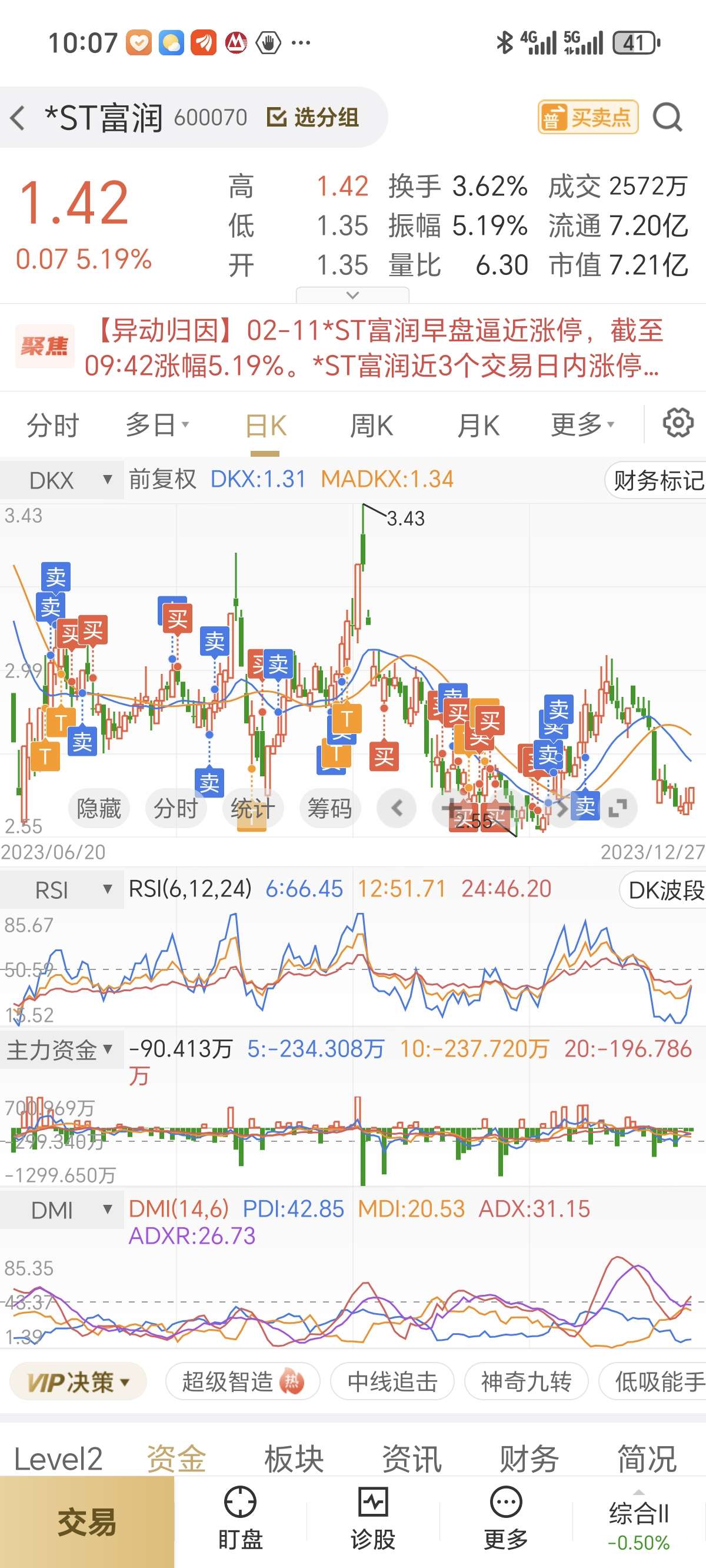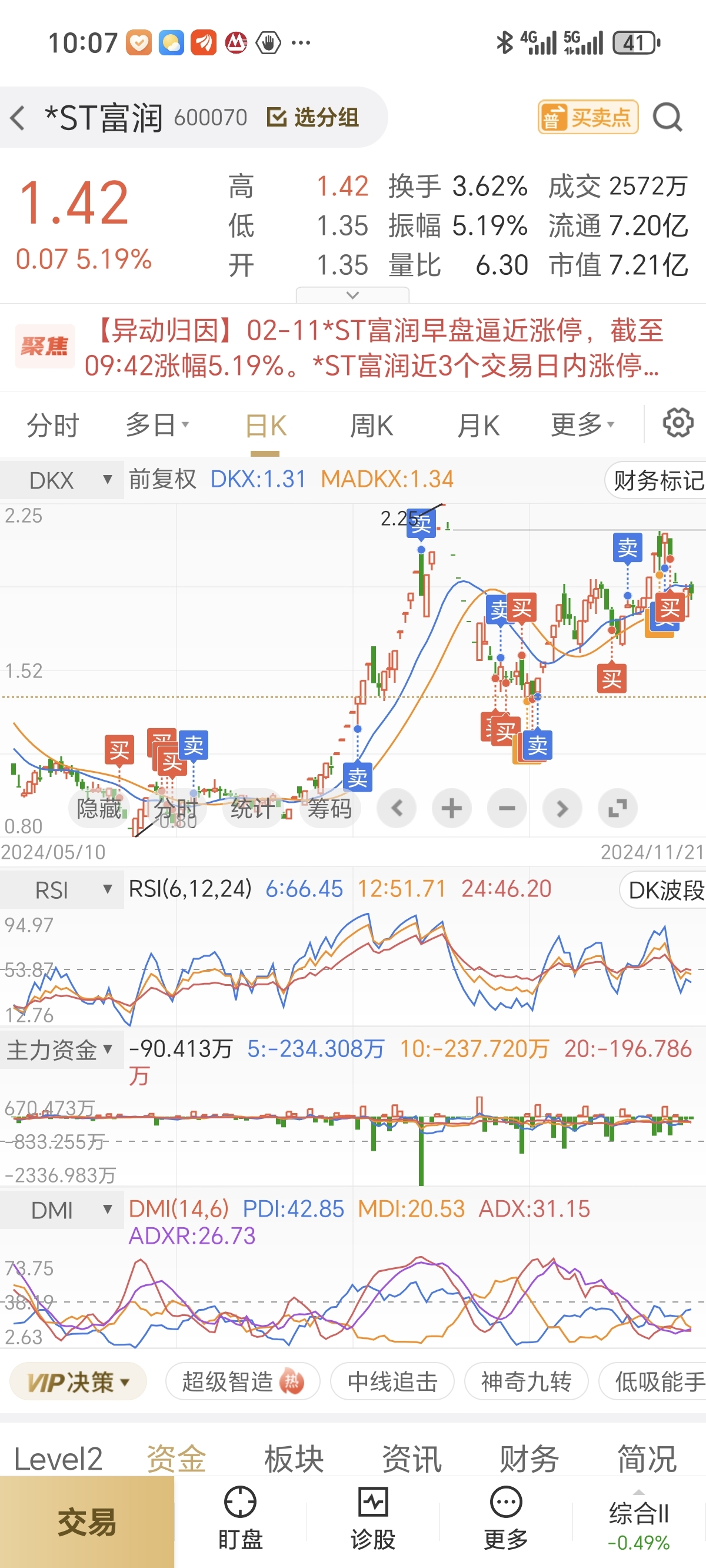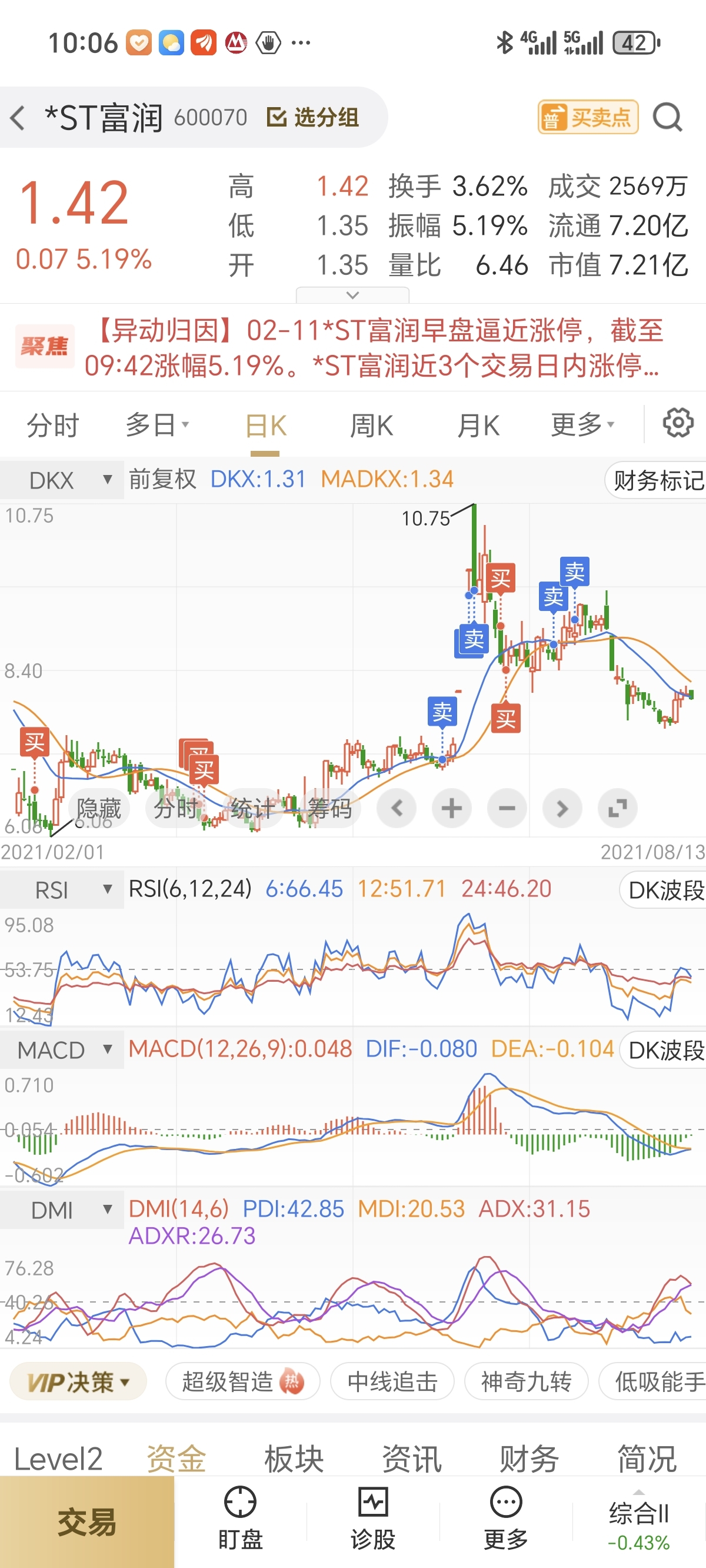 浙江富润,持仓终于翻红了,看到回头钱了
