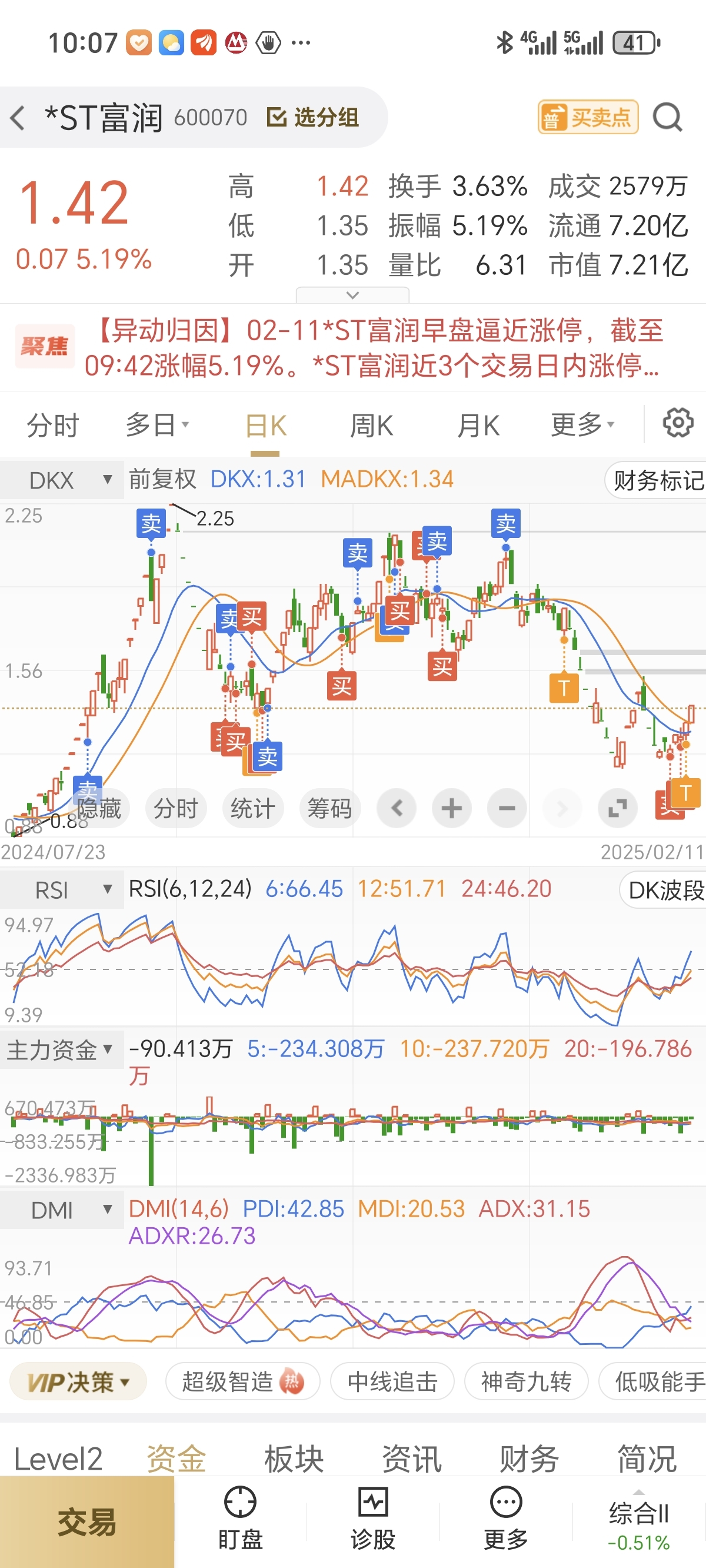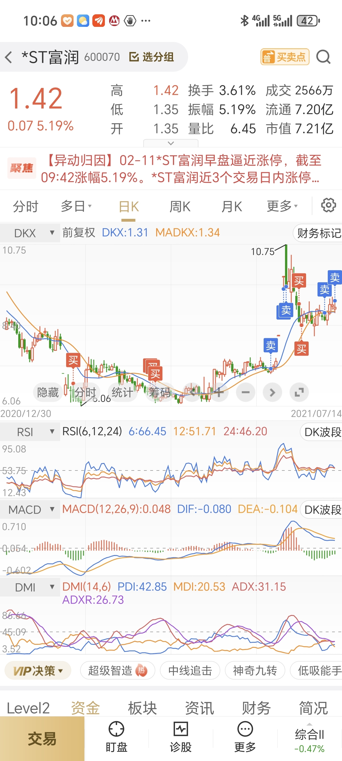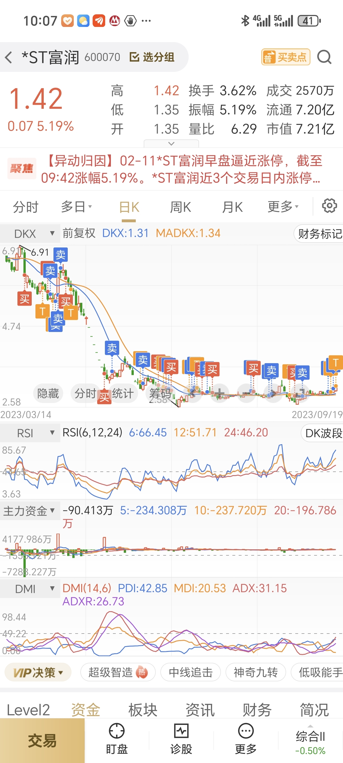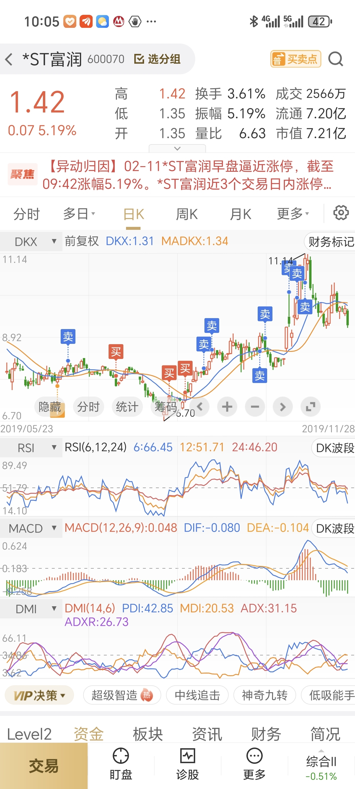 浙江富润,持仓终于翻红了,看到回头钱了