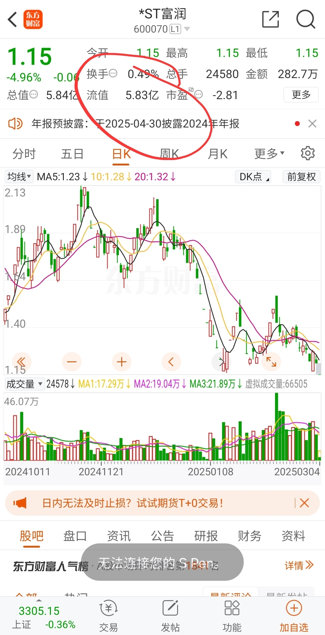 这个票如果继续跌个几天的话,跌破市值。5亿以下要直接退市了。