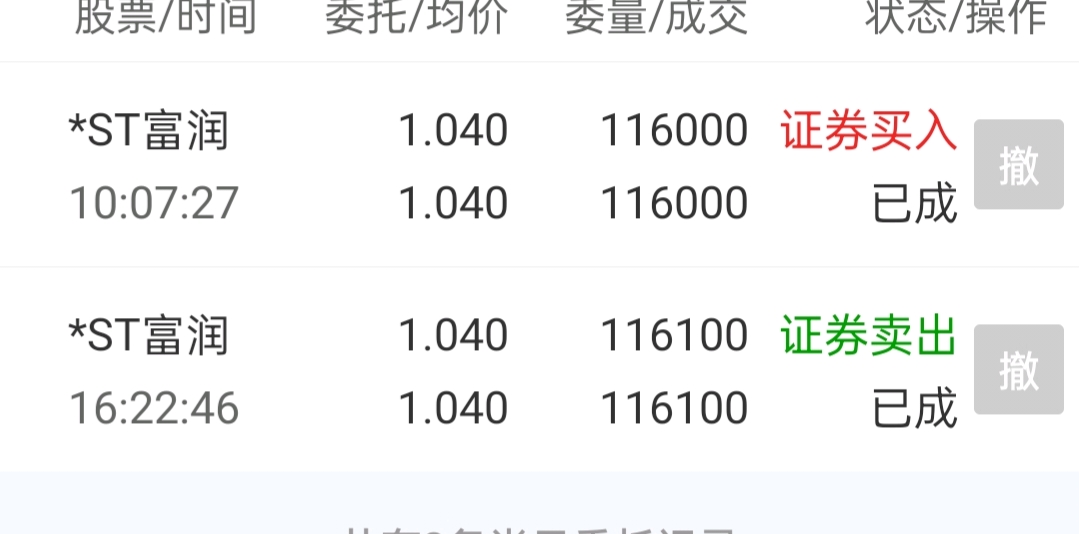 $*ST富润(SH600070)$ 笑死,亏了手续费,少了一百股