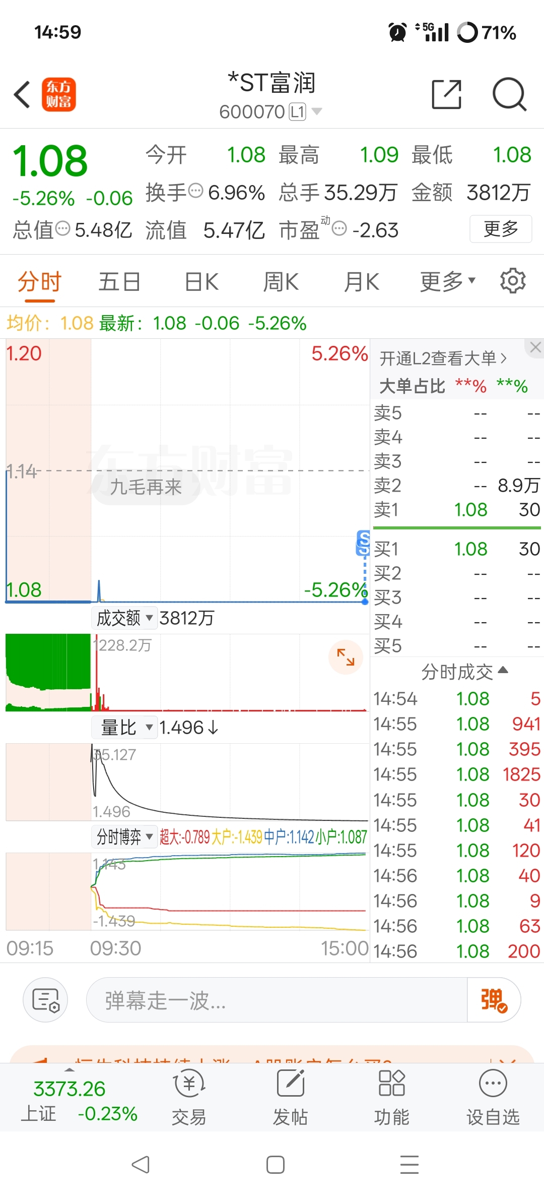$*ST富润(SH600070)$ 还以为今天出不来了。窝草