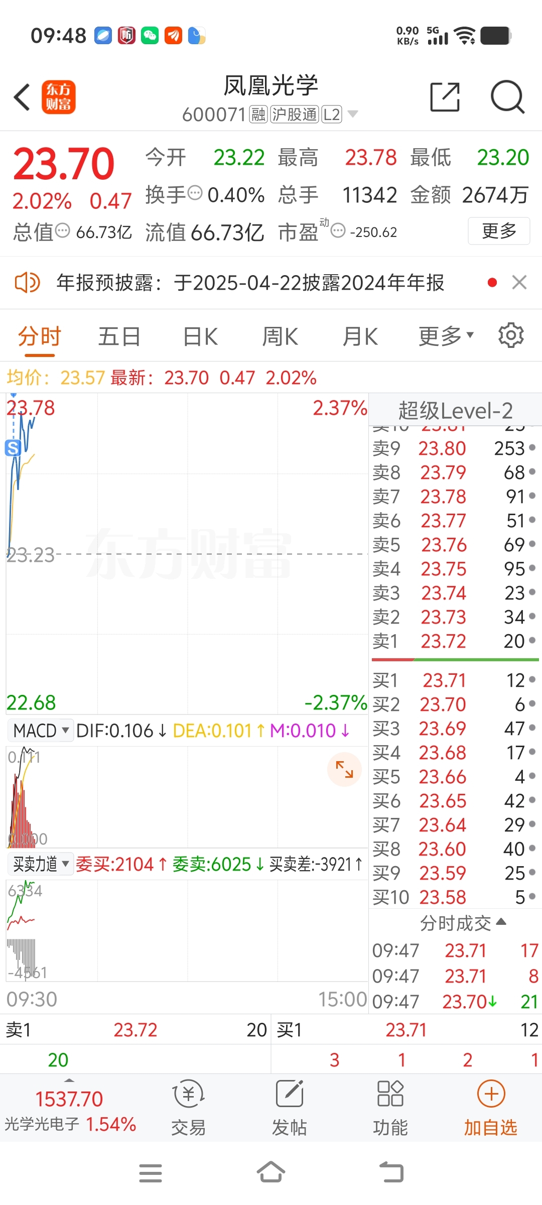 $凤凰光学(SH600071)$ 了,卖了,回撤没买上