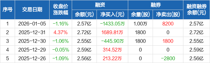 凤凰光学:融资净偿还1433.05万元,融资余额2.57亿元(01-05)