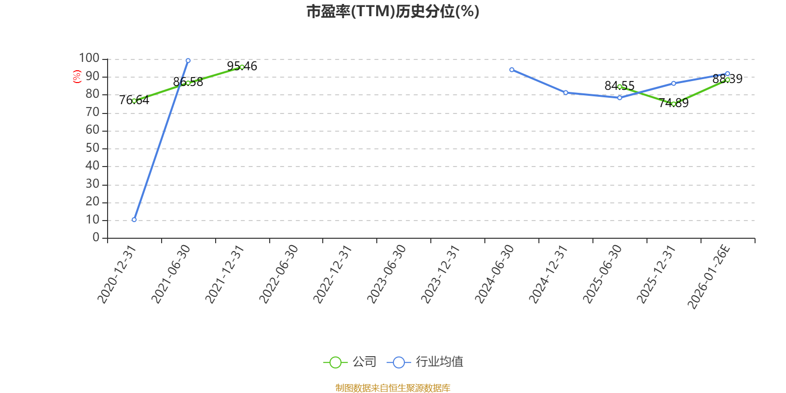 市盈率、市净率为负时,不显示当期分位数,会导致折线图中断。