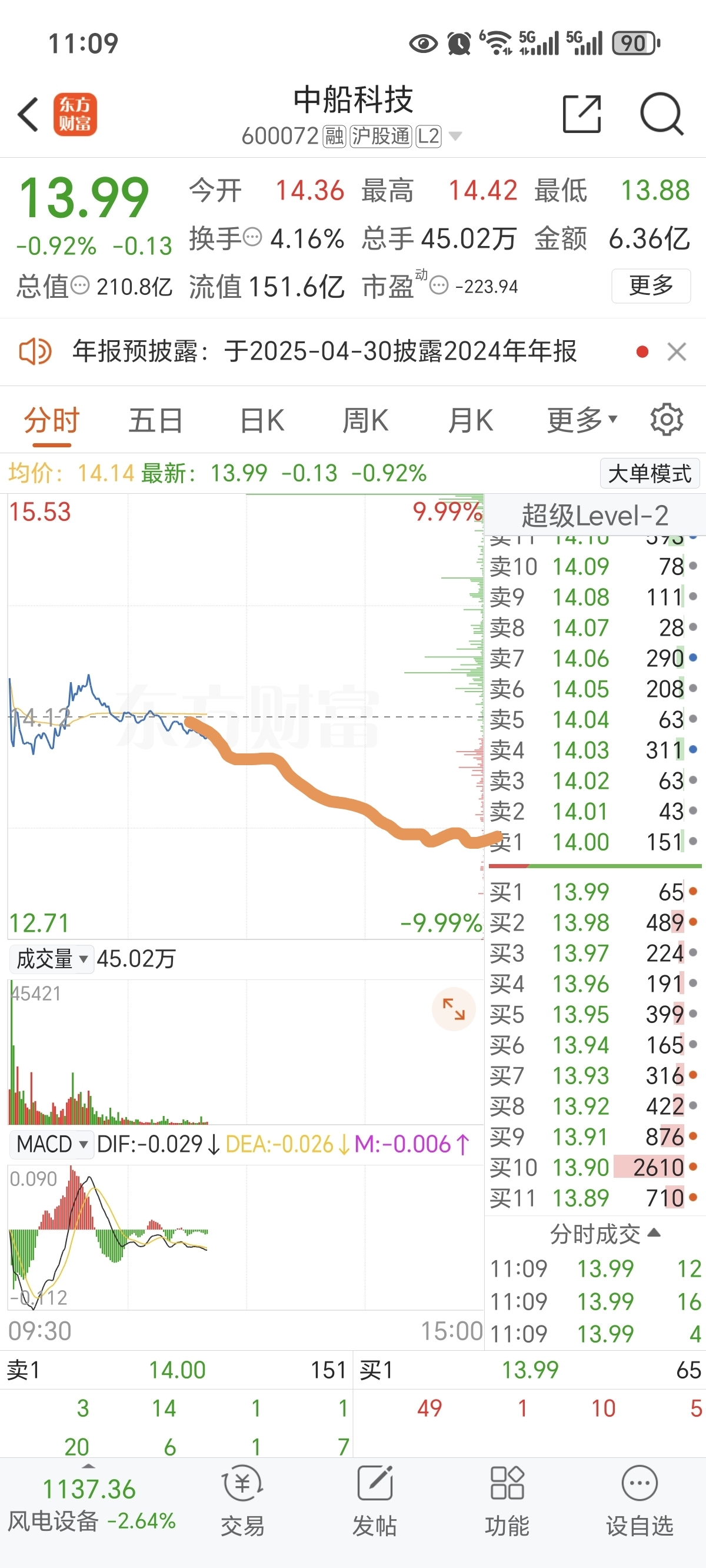 $中船科技(SH600072)$
