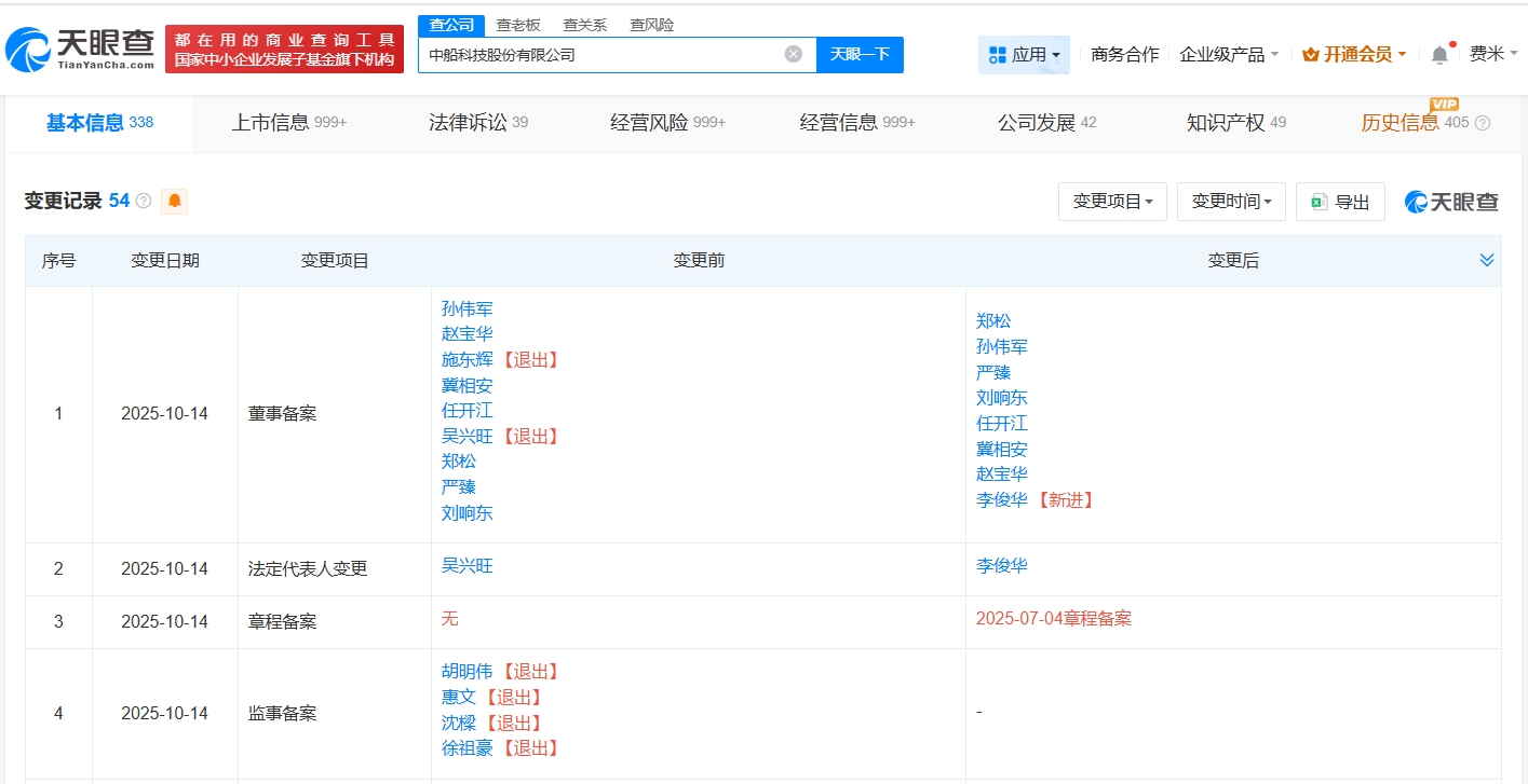 中船科技换帅完成工商变更
