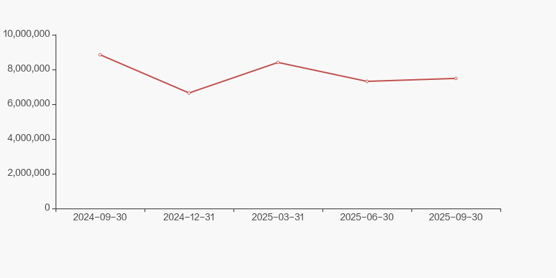 截至2025年9月30日,公司最新总股本为15.03亿股,其中流通股本为10.83亿股。户均持有流通股数量由上期的8414股上升至8611股,户均流通市值10.52万元。