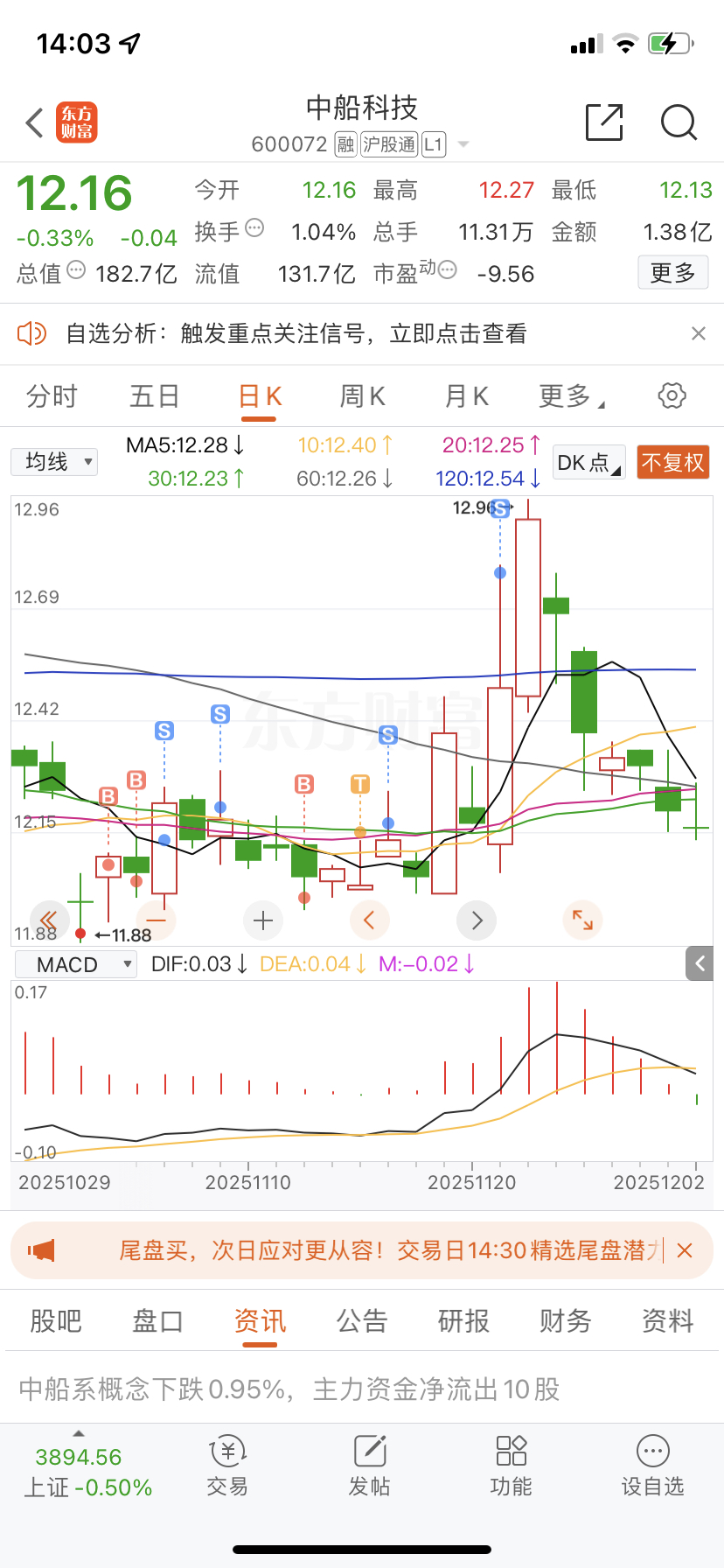 $中船科技(SH600072)$ 日线macd死叉绿珠刚开始,自求多福
