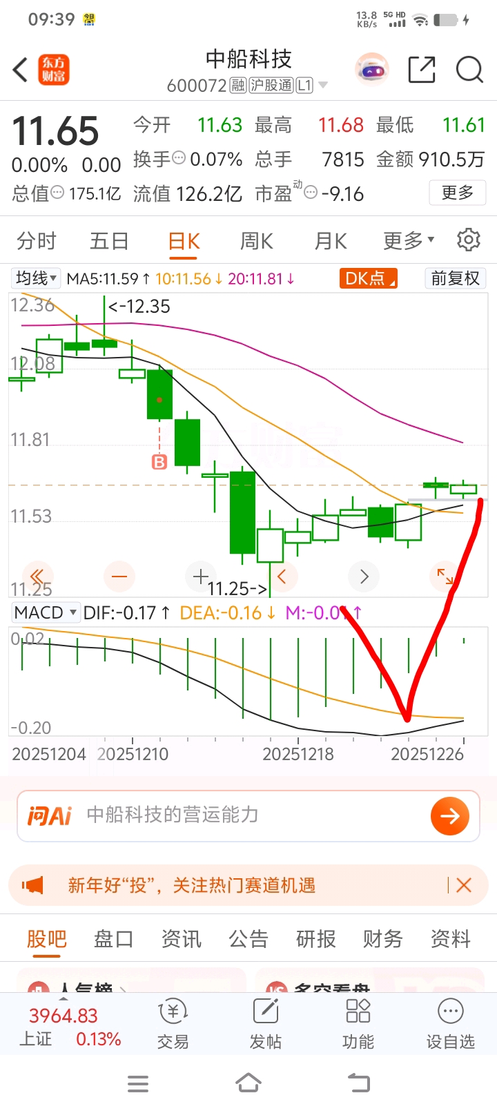 $中船科技(SH600072)$ 还要下跌一段再反弹