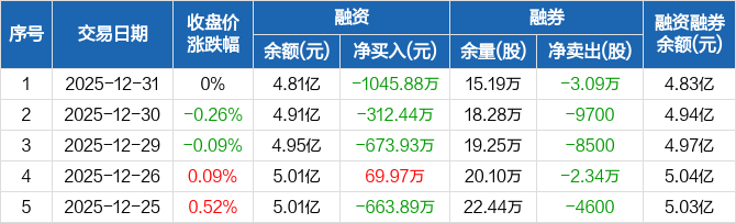中船科技:融资余额4.81亿元,创近一年新低(12-31)