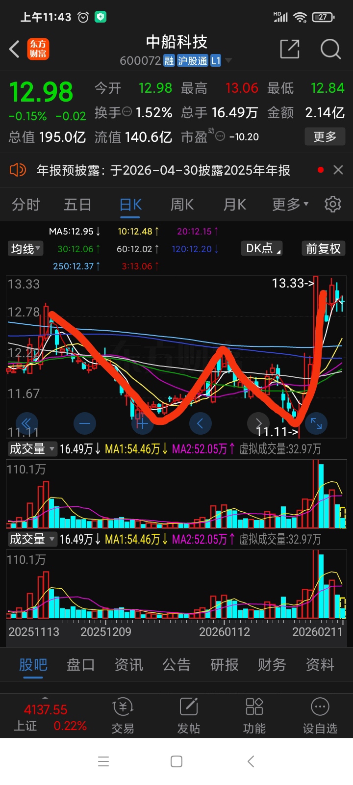 $中船科技(SH600072)$ 有没有懂筑底形态的,这算不算W底