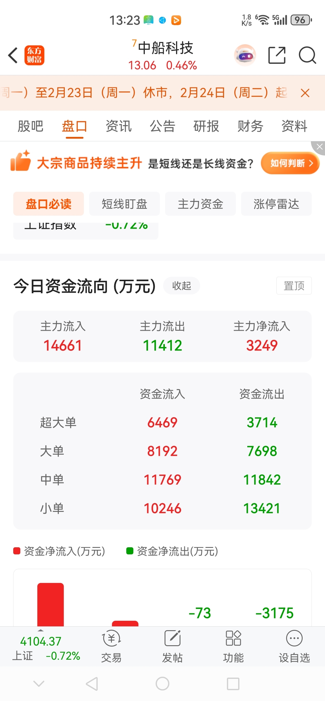 $中船科技(SH600072)$