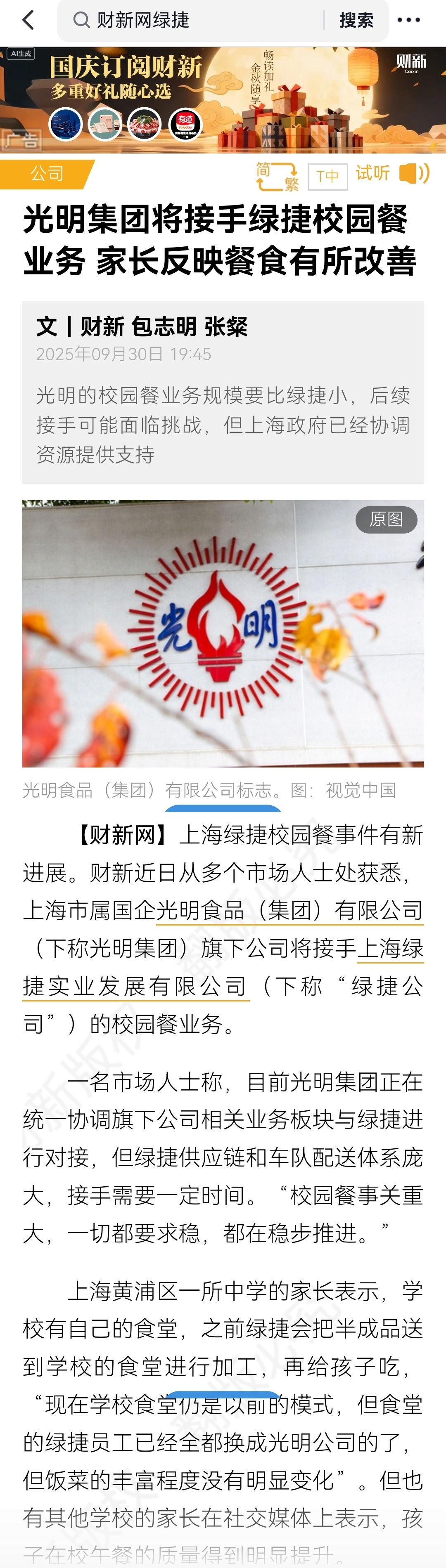 $光明肉业(SH600073)$ 光明集团正在协调旗下子公司对绿捷业务