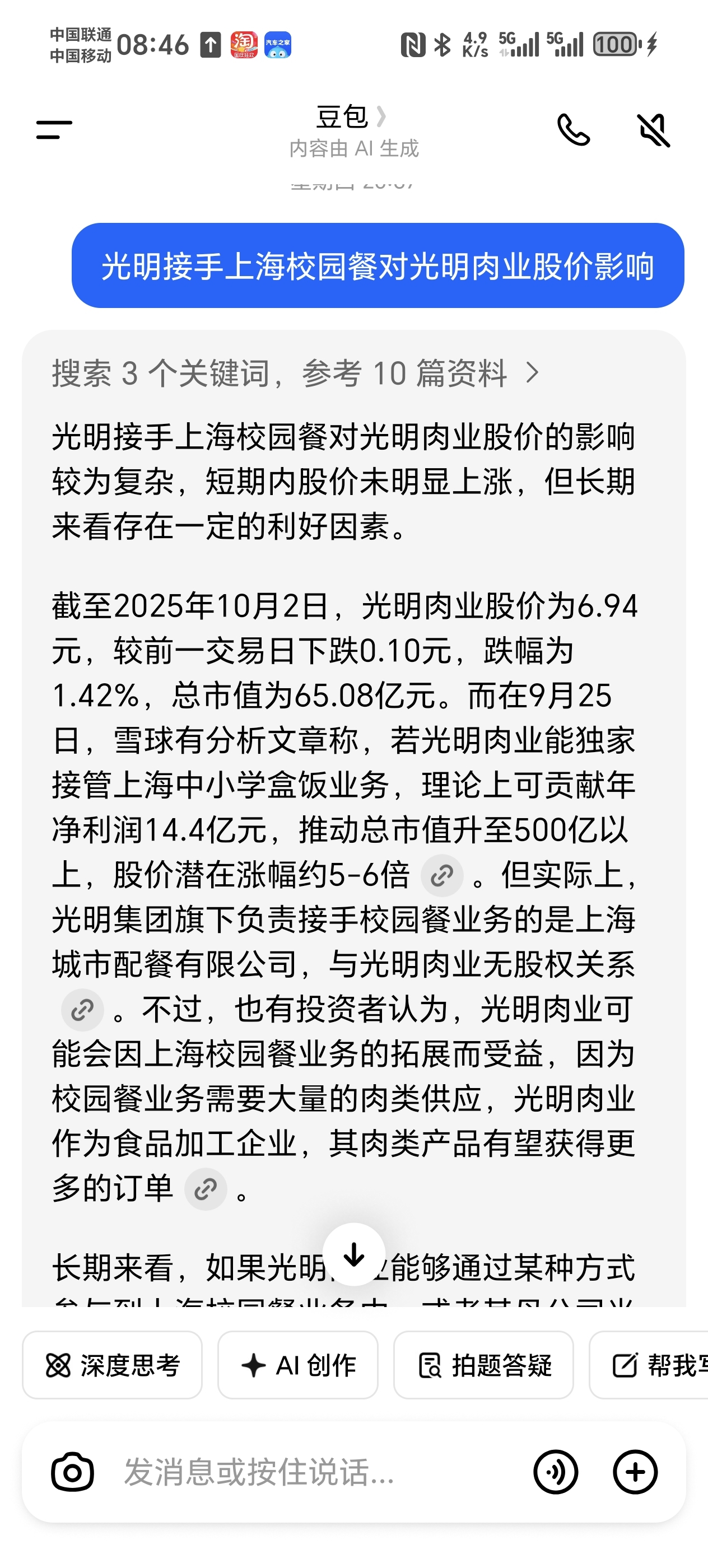 $光明肉业(SH600073)$ 能拿个零头也得涨疯了