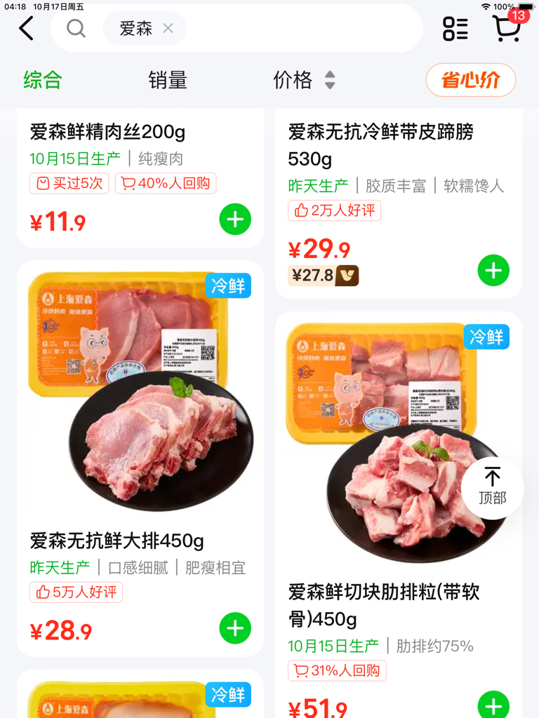 $光明肉业(SH600073)$ 光明肉业的爱森猪肉三个月前就已经涨价20 %了,这是今天全网最低的美团价格。