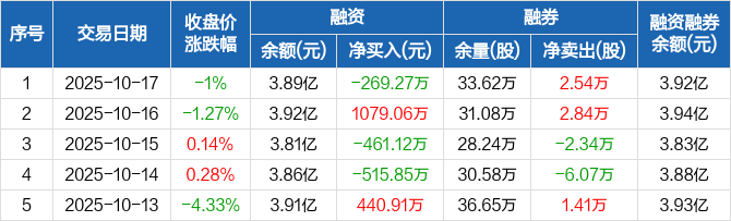 光明肉业:融资净偿还269.27万元,融资余额3.89亿元(10-17)