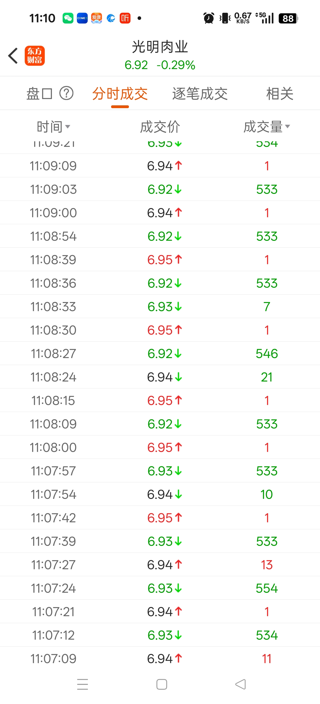 $光明肉业(SH600073)$ 万手哥拆单出货也算是个好人了,要不就直接跌2个点