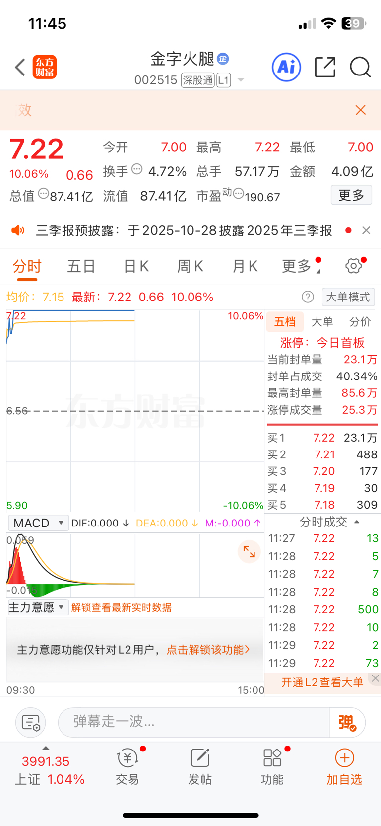 猪肉板块大涨,业绩比光明肉业差十倍的金字火腿一个字板涨停