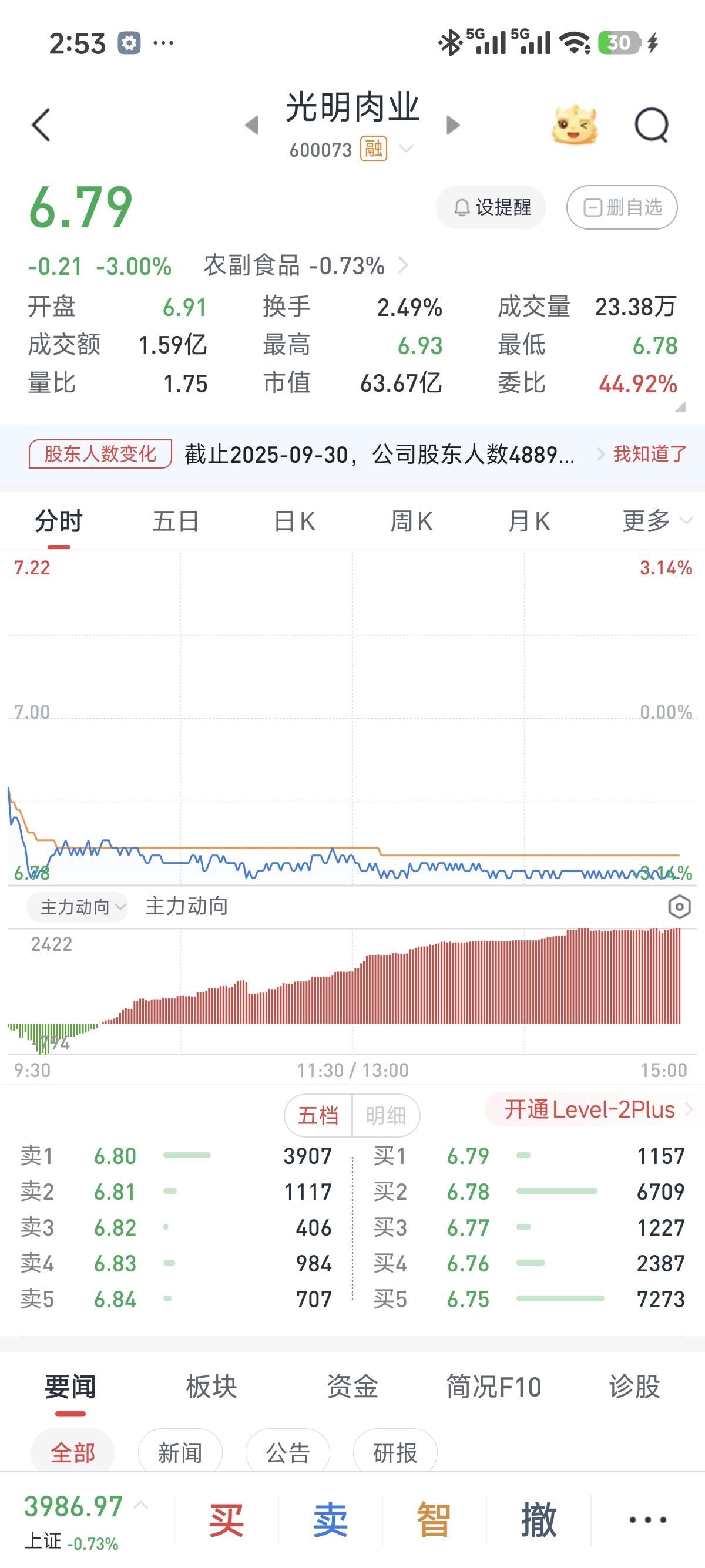 $光明肉业(SH600073)$