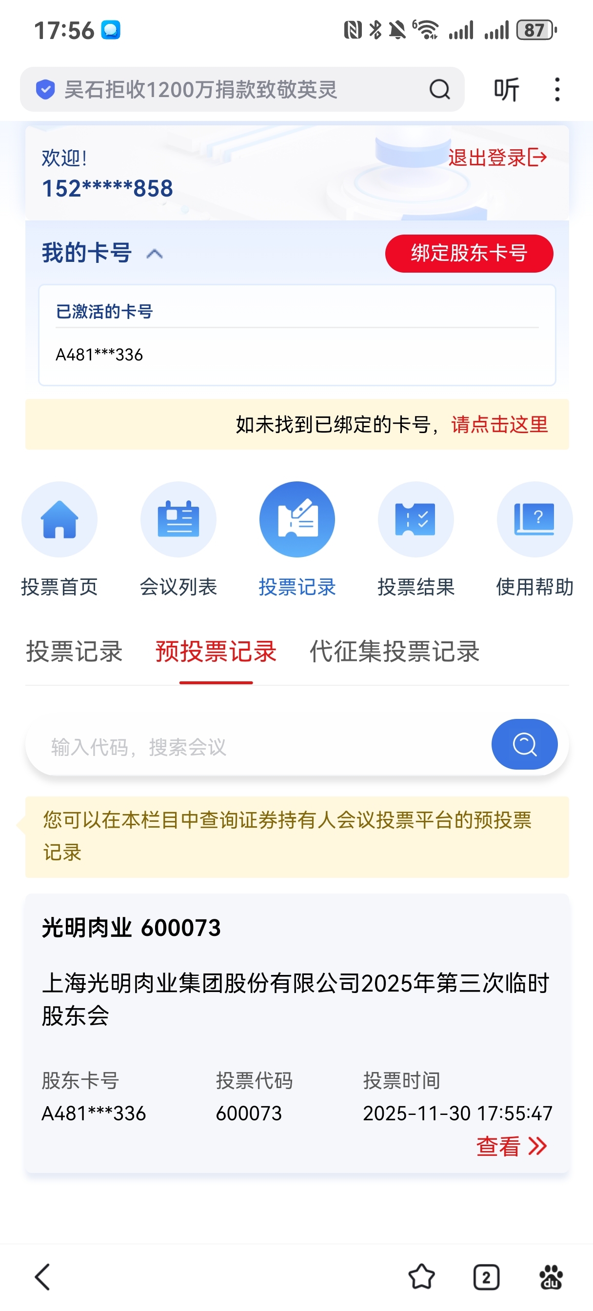 $光明肉业(SH600073)$ 可以投票了!已投票!