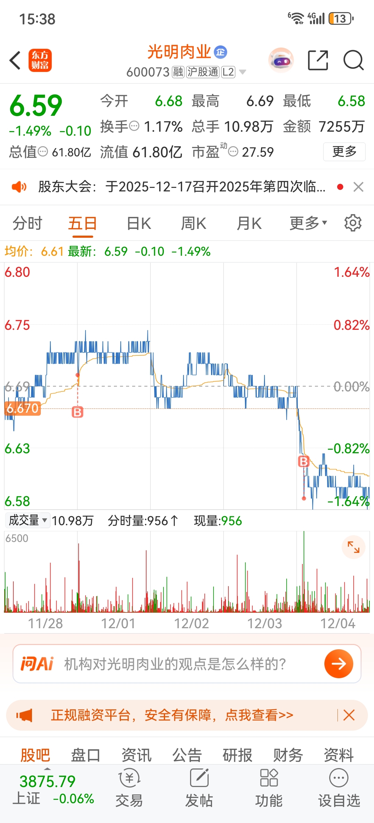$光明肉业(SH600073)$ 再买点二师兄,慢慢买,差不多了,逢低买入。