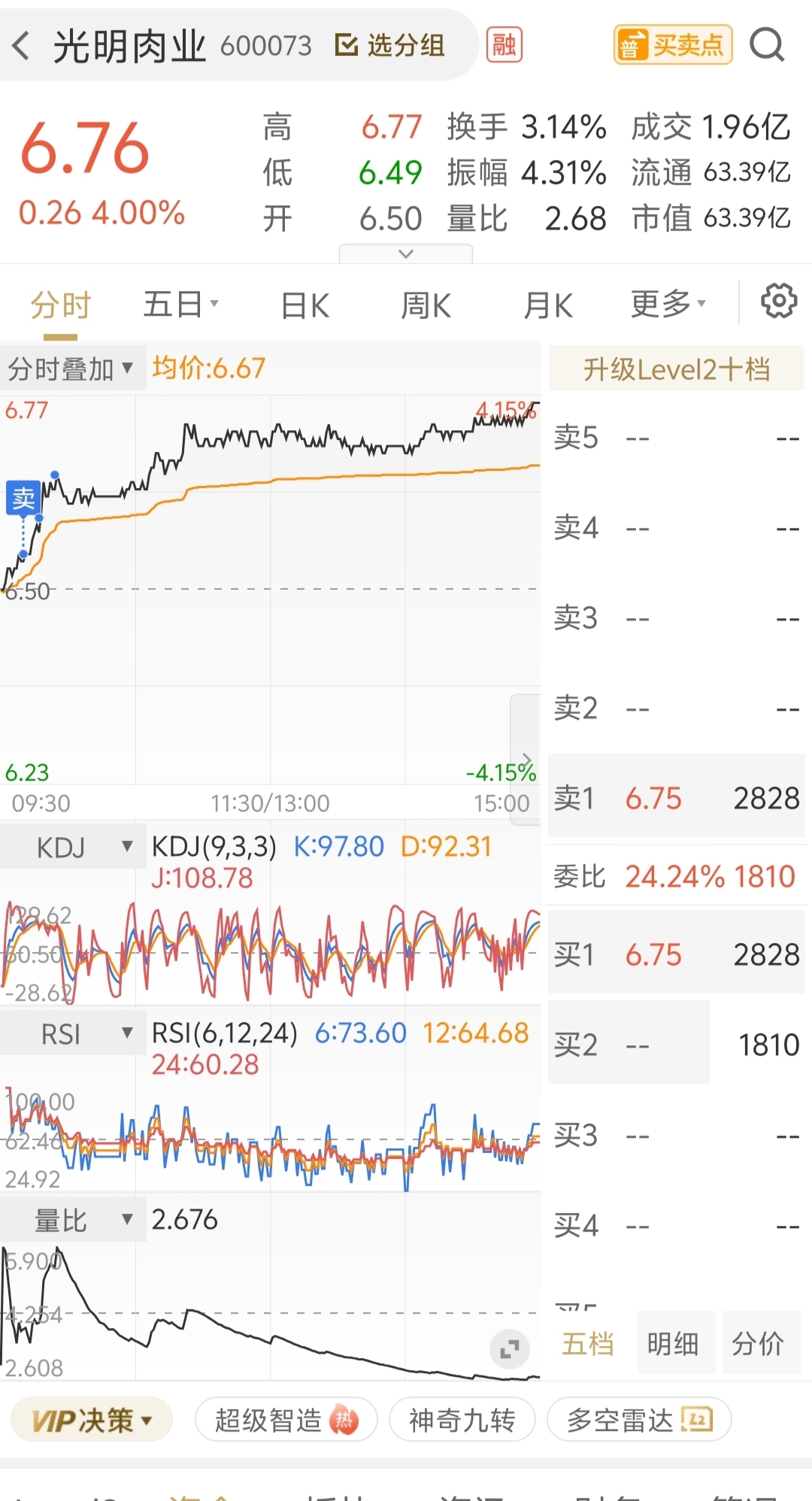 $光明肉业(SH600073)$ 没办法熬不住了,卖飞了,这是命苦