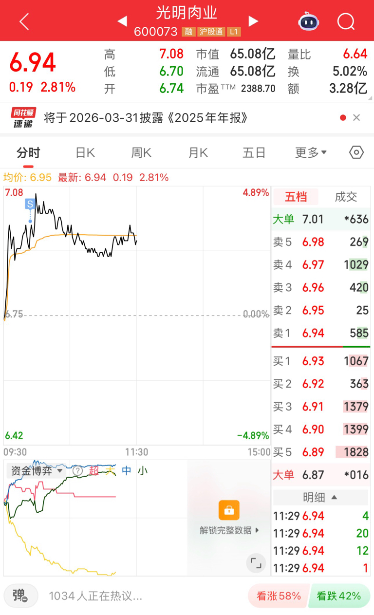 $光明肉业(SH600073)$ 我走了你就涨?