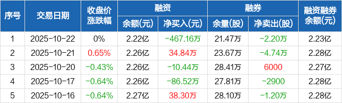 新疆天业:融资净偿还467.16万元,融资余额2.22亿元(10-22)