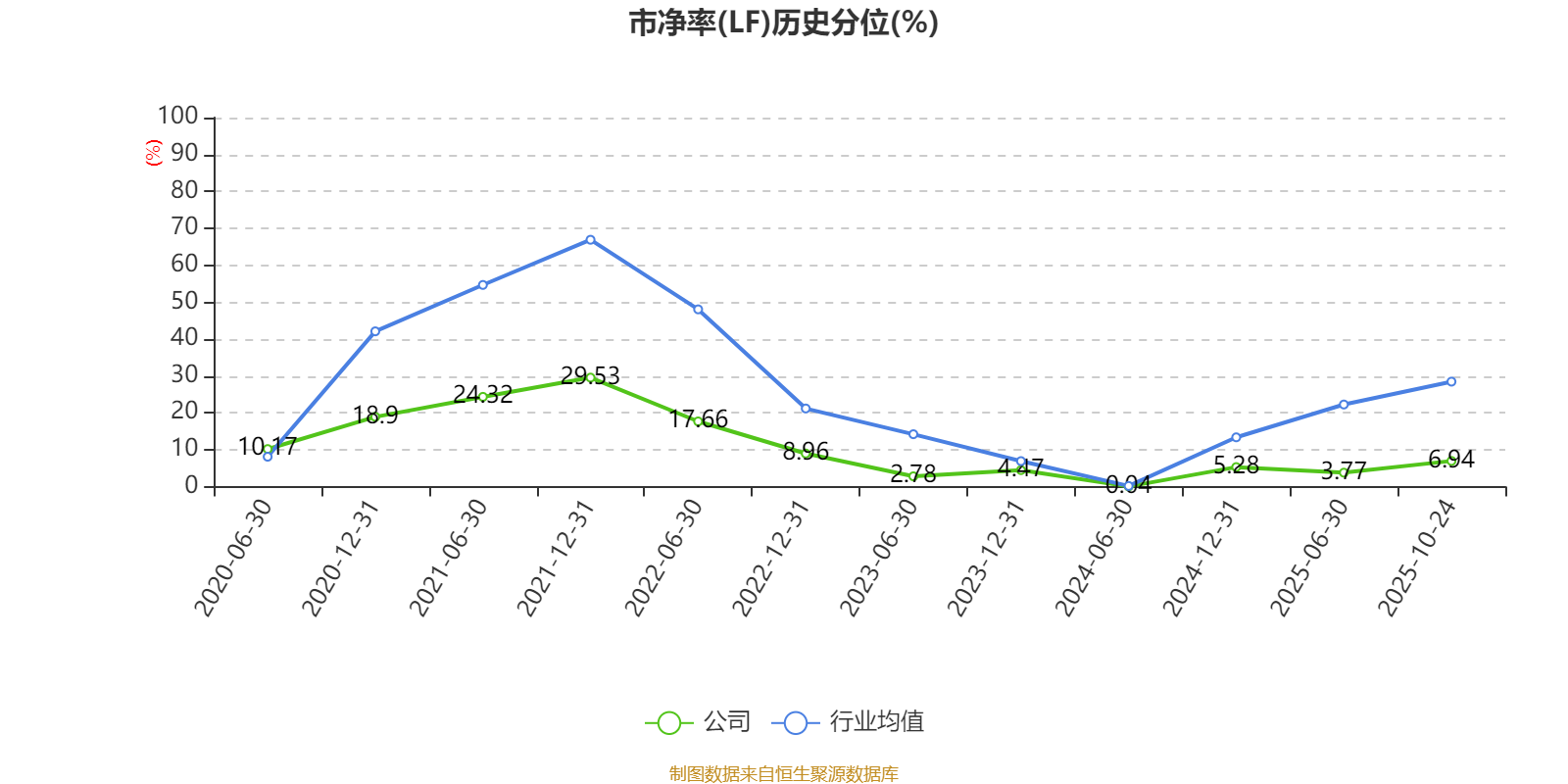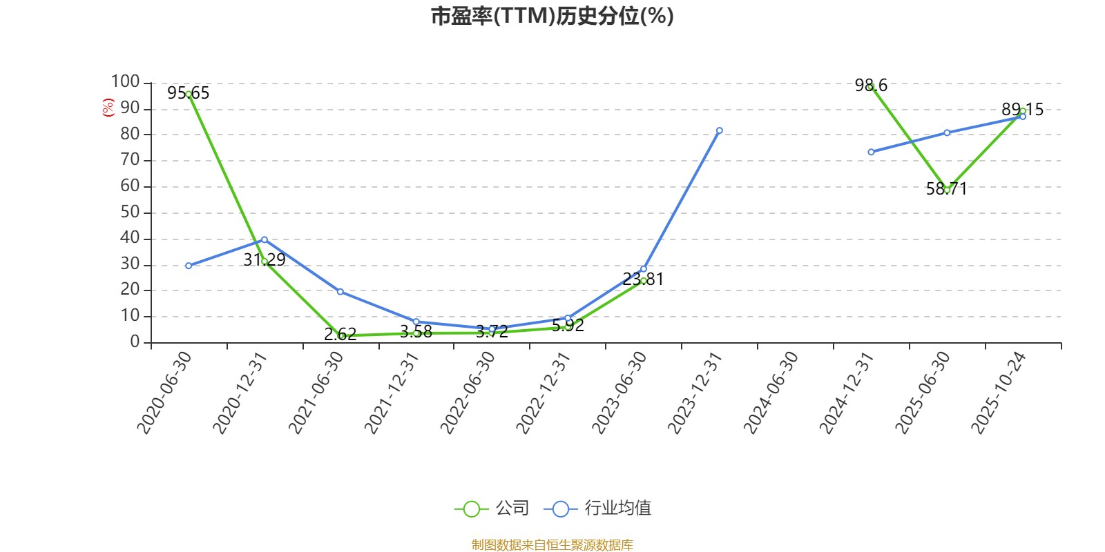 市盈率、市净率为负时,不显示当期分位数,会导致折线图中断。