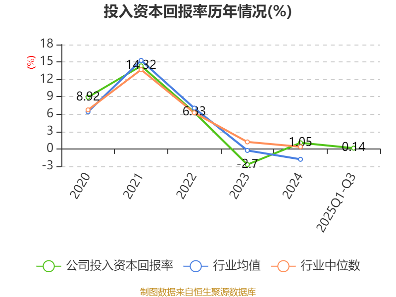 盈利能力方面, 2025年前三季度公司加权平均净资产收益率为0.08%,同比下降0.03个百分点。公司2025年前三季度投入资本回报率为0.14%,较上年同期下降0.14个百分点。